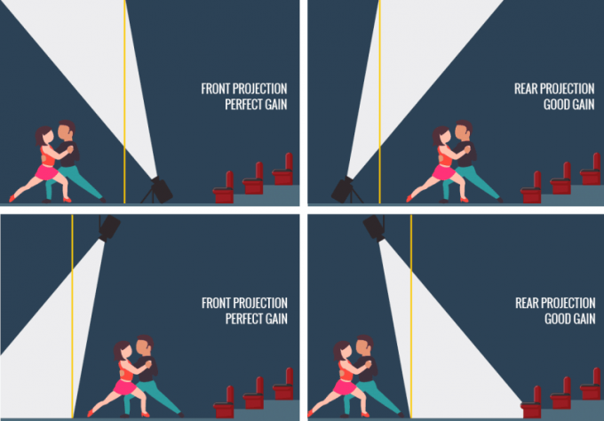 يمكن تثبيت الأمامي والخلفي من المرحلة ، ويمكن أن تكون الشاشة الإسقاط الأمامي والخلفي.
