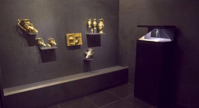 भौतिक उत्पादों के साथ होलोग्राफिक 3 डी सामग्री को जोड़ती है, शोकेस के अंदर ऑब्जेक्ट मॉडल डाल सकती है।
