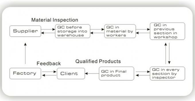 Departemen kontrol kualitas kami bertanggung jawab untuk konfirmasi pada item yang relevan dalam rangka merancang dan mengembangkan, menguji dan verifikasi kelayakan teknologi produksi, manajemen pendukung, pemeriksaan pada bahan, kontrol pada proses, pemeriksaan produk ex-pabrik, setelah -Sales layanan, setup, manajemen instrumen dan perlengkapan serta praktek dan perbaikan pada sistem jaminan kualitas.
