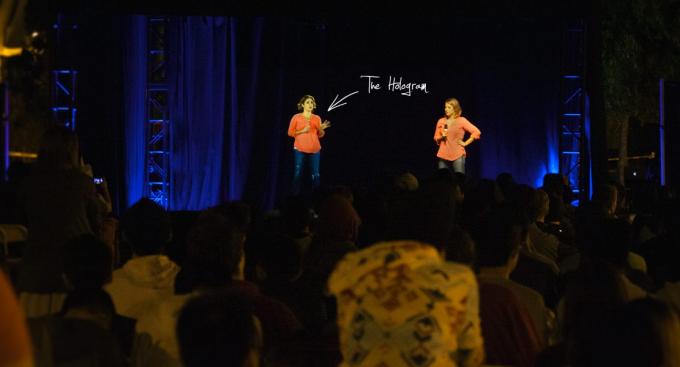 1. Beam CEO Anda ke atas panggung sebagai hologram 3D. Dia kemudian bisa memberikan presentasi lengkap kepada hadirin.