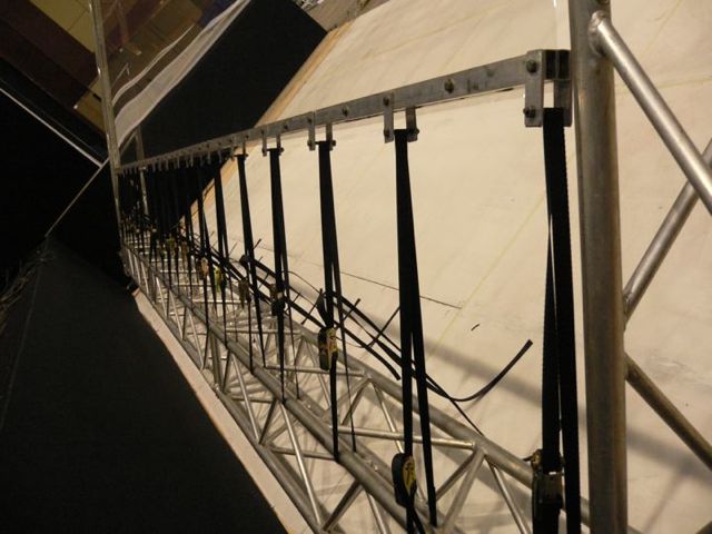 Pengaturan panggung pada dasarnya adalah "kotak hitam" yang dibangun menggunakan rangka aluminium, tirai hitam, pementasan, lampu, dan sistem audio.