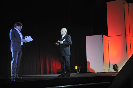 7) تنظیم صحنه در اصل "جعبه سیاه" است که با استفاده از خرپا آلومینیومی ، درپوش های سیاه ، صحنه سازی ، چراغ ها و یک سیستم صوتی ساخته شده است.