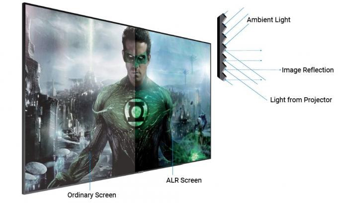 Anty-świetlny ekran projekcyjny nie tylko odrzuca światło z otoczenia, ale także zachowuje prawdziwy kolor i rozdzielczość nawet w silnym świetle, takim jak telewizor.