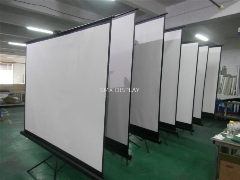 Tripod Screens are durable, compact, light-weight and user-friendly. The operation is flexible and the height of screen can be adjusted using the locking system in the tripod. It is also very handy for portability and transportation. Easy to set up - simply pull up the screen and it takes up little space. Ease of storage too. There are B&E type tripod stand for choose. The screen is widely used in meeting rooms, schools, outdoor presentations etc.