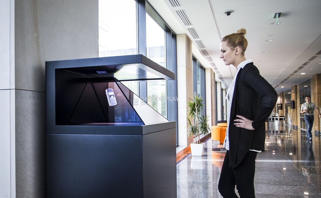270° Holo Showcase is a holographic 3D display viewable from 3 sides. It allows you to combine a physical object with 3D holographic content. It is originally designed for smaller objects such as jewelry, perfume, watches, toys and mobile phones, but FMCG products could also be displayed. it is possible to place a physical product inside the showcase for combining it with the 3D holographic content.